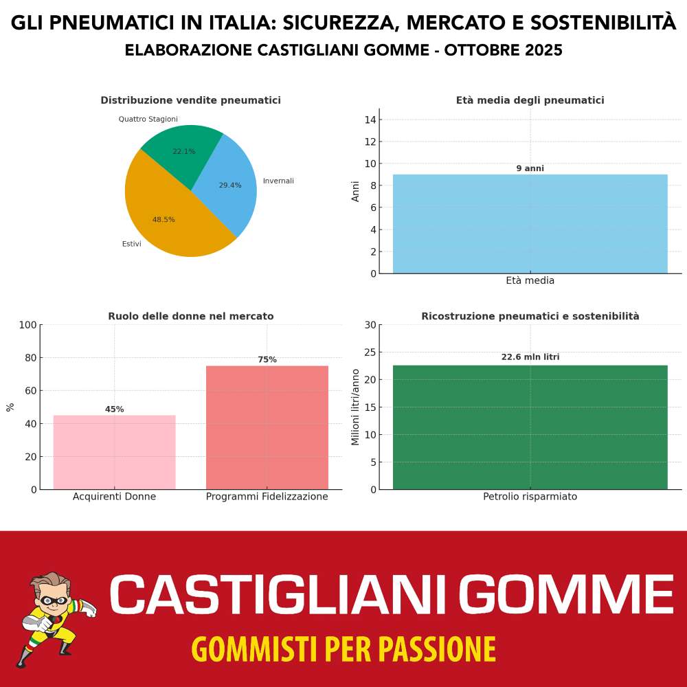 Un numero però fa riflettere: l’età media delle gomme in Italia è di 9 anni, segno che molti automobilisti continuano a circolare con pneumatici vecchi e potenzialmente pericolosi.